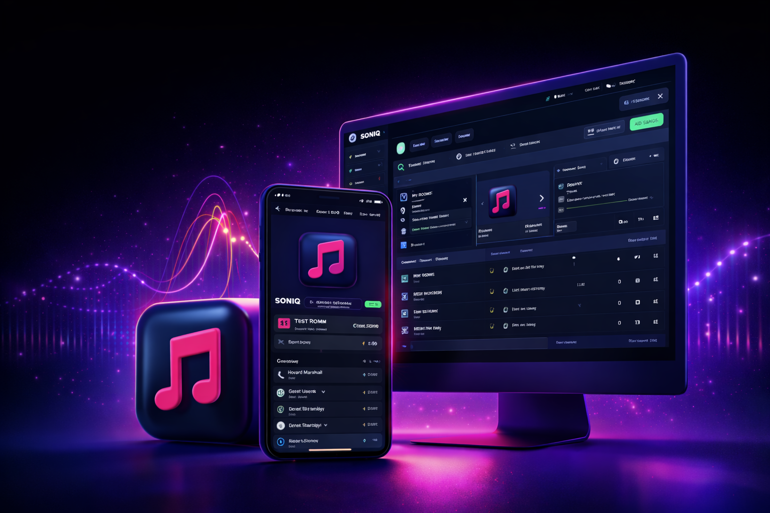 SONIQ is a real-time social music web app where users can listen to YouTube songs together in perfectly synced rooms. Create or join rooms, chat, manage queues, assign roles (Admin, DJ, Moderator), and enjoy a premium, interactive shared-listening experience.